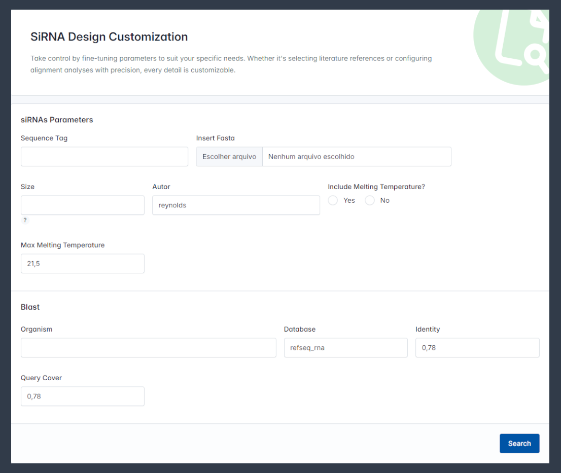 Utilize advanced features like RNA translation, customizable siRNA length, author-specific scoring, melting temperature (Tm) calculation, Gibbs free energy (ΔG°) estimation, and integrated BLAST analysis for precise gene identification.